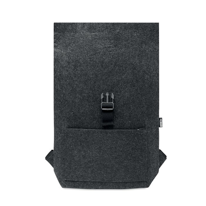 Rugzak van RPET vilt met katoenen sluitband, ritsvak aan de voorkant en een laptopcompartiment.