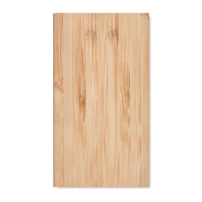 Powerbank 4000 mAh van bamboe met zonnepaneel. Capaciteit voor smartphone gebruik, 2 USB poorten DC5V/1A. Inclusief indicatielampje en USB kabel met micro usb plug. Bamboe is een natuurlijk product, de kleur per artikel kan verschillen.