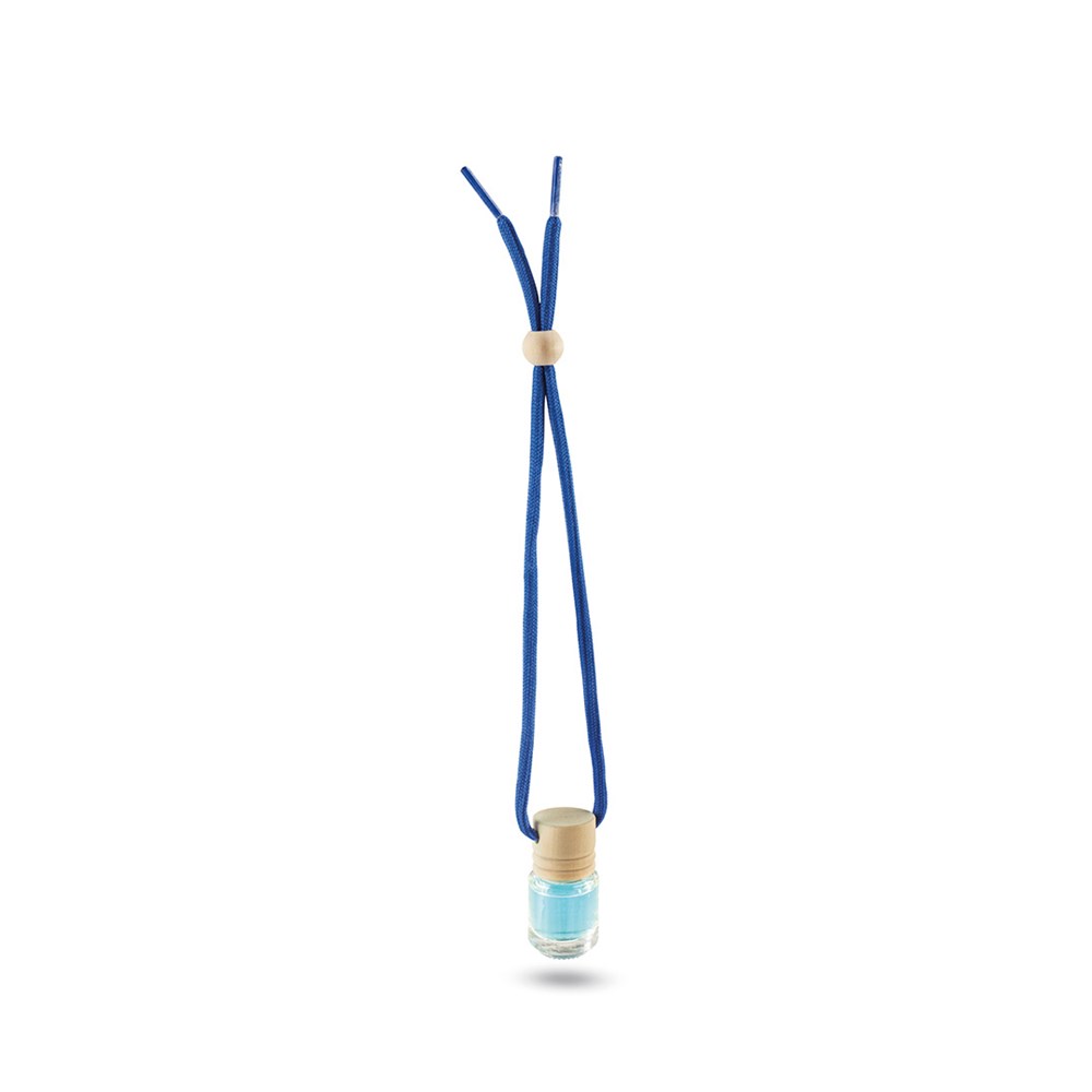 Ocean geurverfrisser. In glazen pot van 5 ml met houten stop en koord in bijpassende kleur . Gepresenteerd in een doos van PVC.