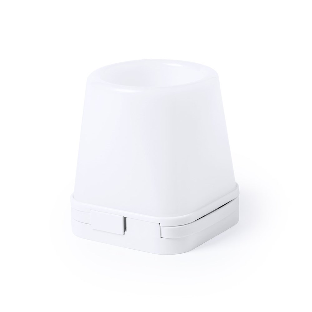 Pennenbankje met geintegreerde USB uitgang. LED verlichting met 2 licht posities. Inclusief 4 USB 2.0 uitgangen. Worden per stuk geleverd in een kartonnen doosje.