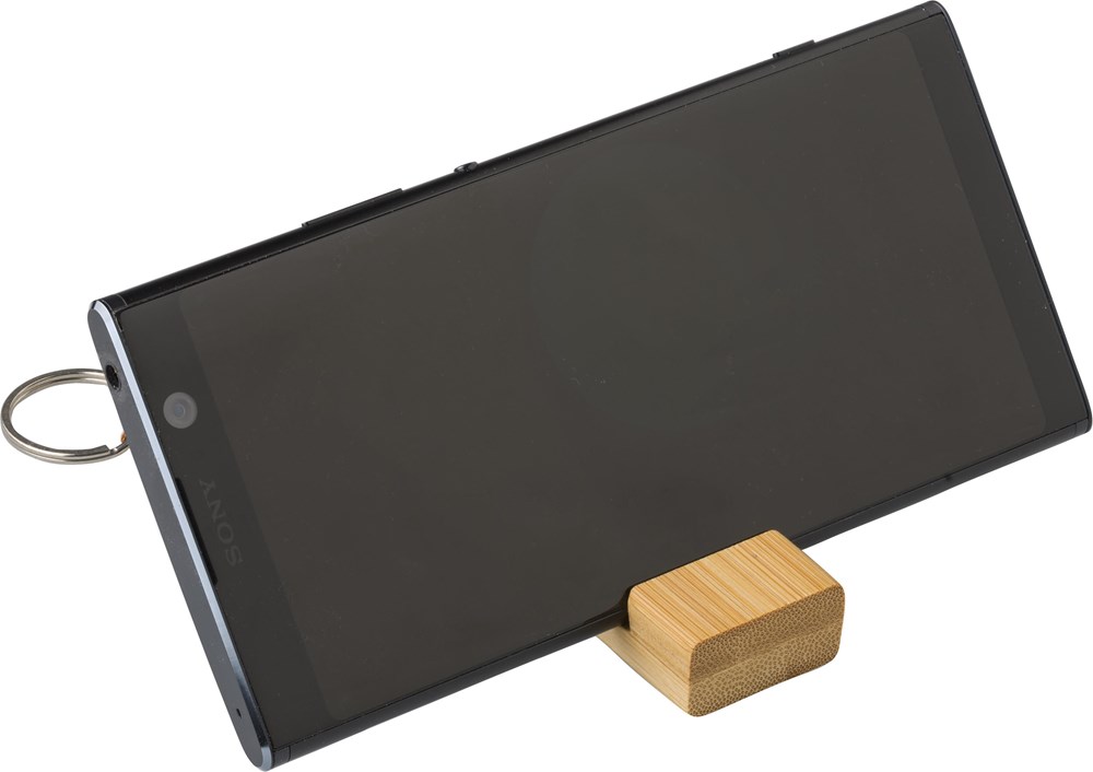 Bamboe sleutelhanger met telefoonhouder.