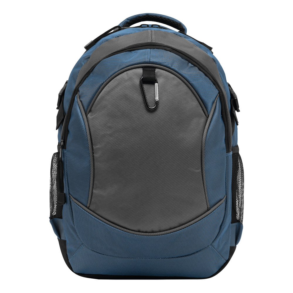 Luxe rugzak HIGH-CLASS van zware kwaliteit polyester (1680D). Hoofdvak met extra insteekvak, afsluitbaar binnenvak en een uitgang voor bijvoorbeeld snoer van oortelefoon. Voorvak met ritssluiting en karabijnhaak. 2 netvakken aan de zijkant en een pakband. Verstevigde draaggreep en gevoerde schouderbanden en rug.