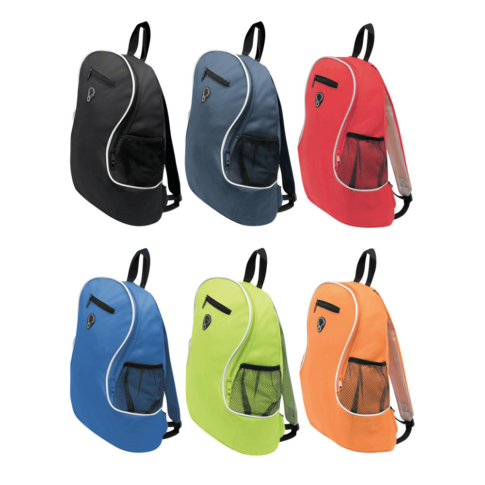 Rugzak TEC van 600D polyester met groot, dmv rits afsluitbaar, hoofdvak, voorvak met kabeluitgang, 2 netvakken aan de zijkant en gevoerde schouderbanden.