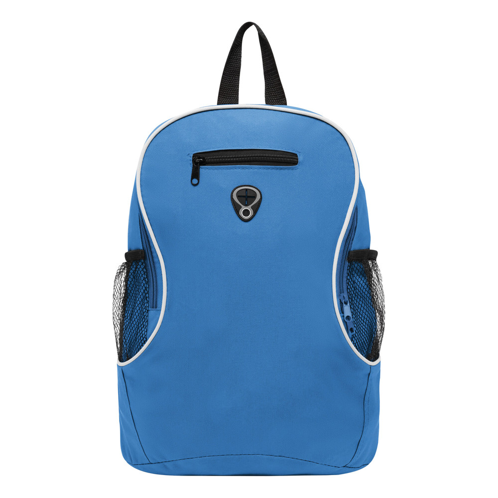 Rugzak TEC van 600D polyester met groot, dmv rits afsluitbaar, hoofdvak, voorvak met kabeluitgang, 2 netvakken aan de zijkant en gevoerde schouderbanden.