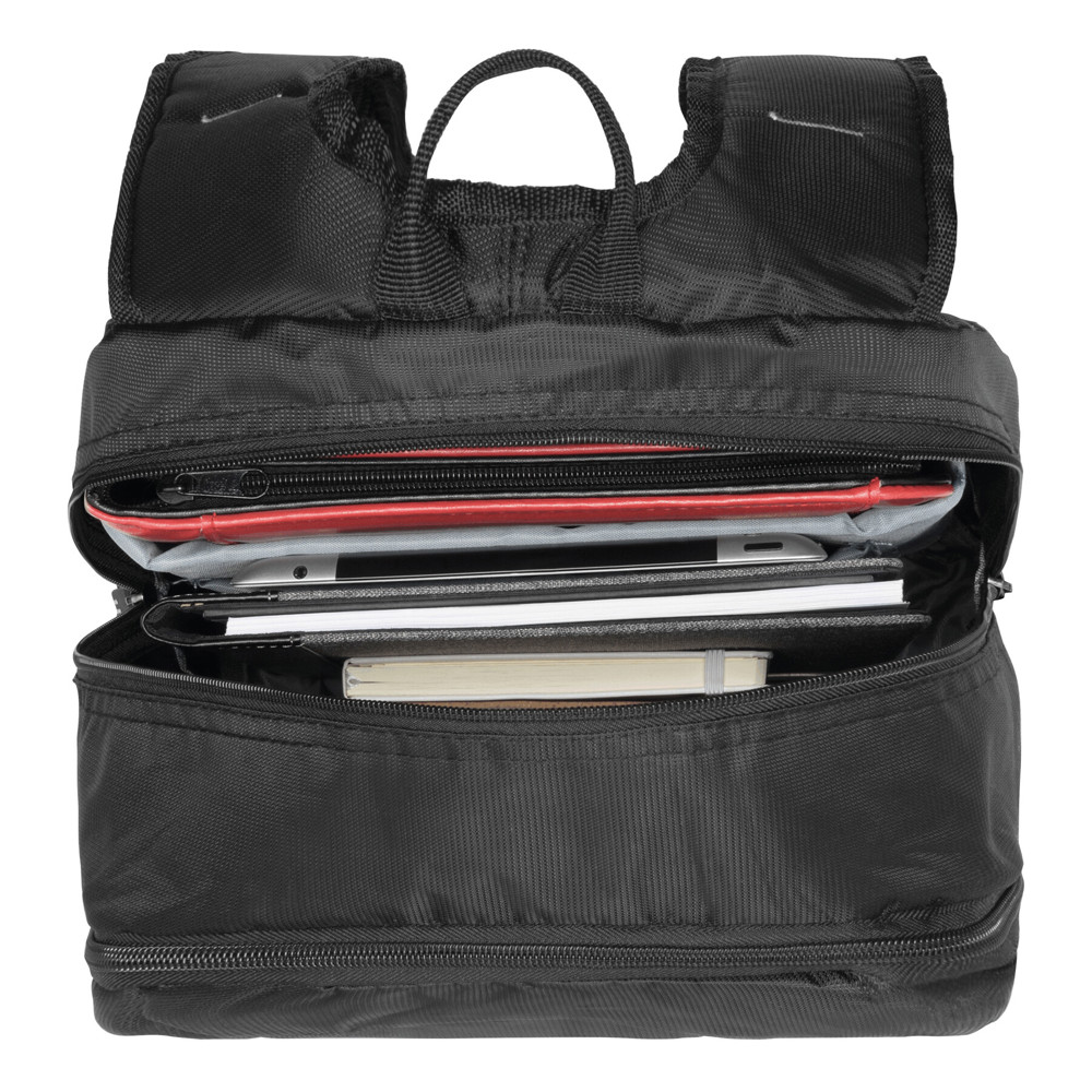 Laptop rugzak TALLINN met klein vooorvak, organiser, gevoerd hoofdvak voor laptop of tablet, een gevoerd insteekvak, 2 netvakken, draaggreep, gepolsterde schouderbanden en rug.