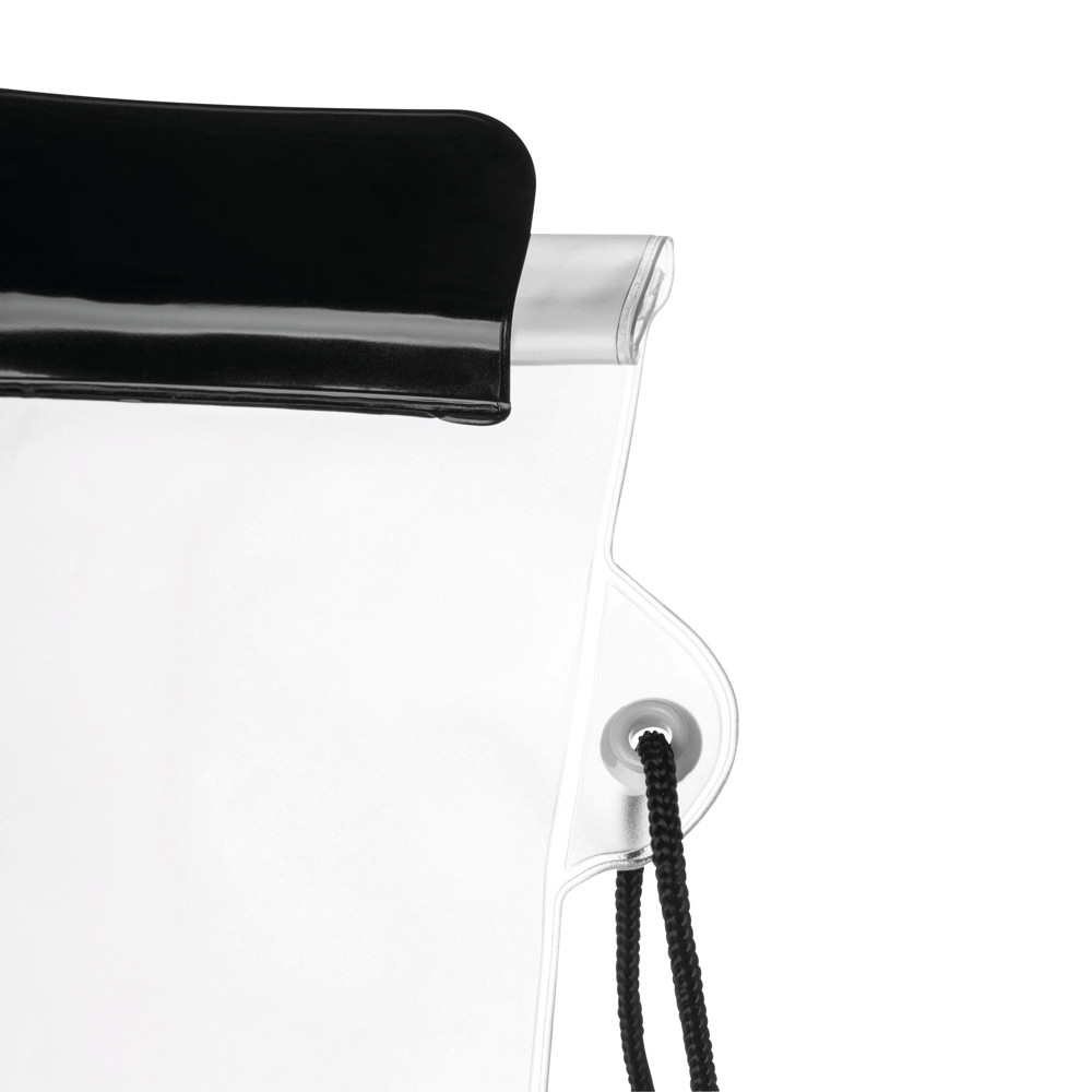 Opberghoesje SMART SPLASH, spatwaterdicht: transparante voorkant, matte (gefronste) achterkant, met verzegelings- en klittenbandsluiting, verstelbaar koord (ca. 45 cm) met kunststof stopper – ideaal voor op het strand of bij het meer om portemonnee en andere waardevolle spullen veilig op te bergen.