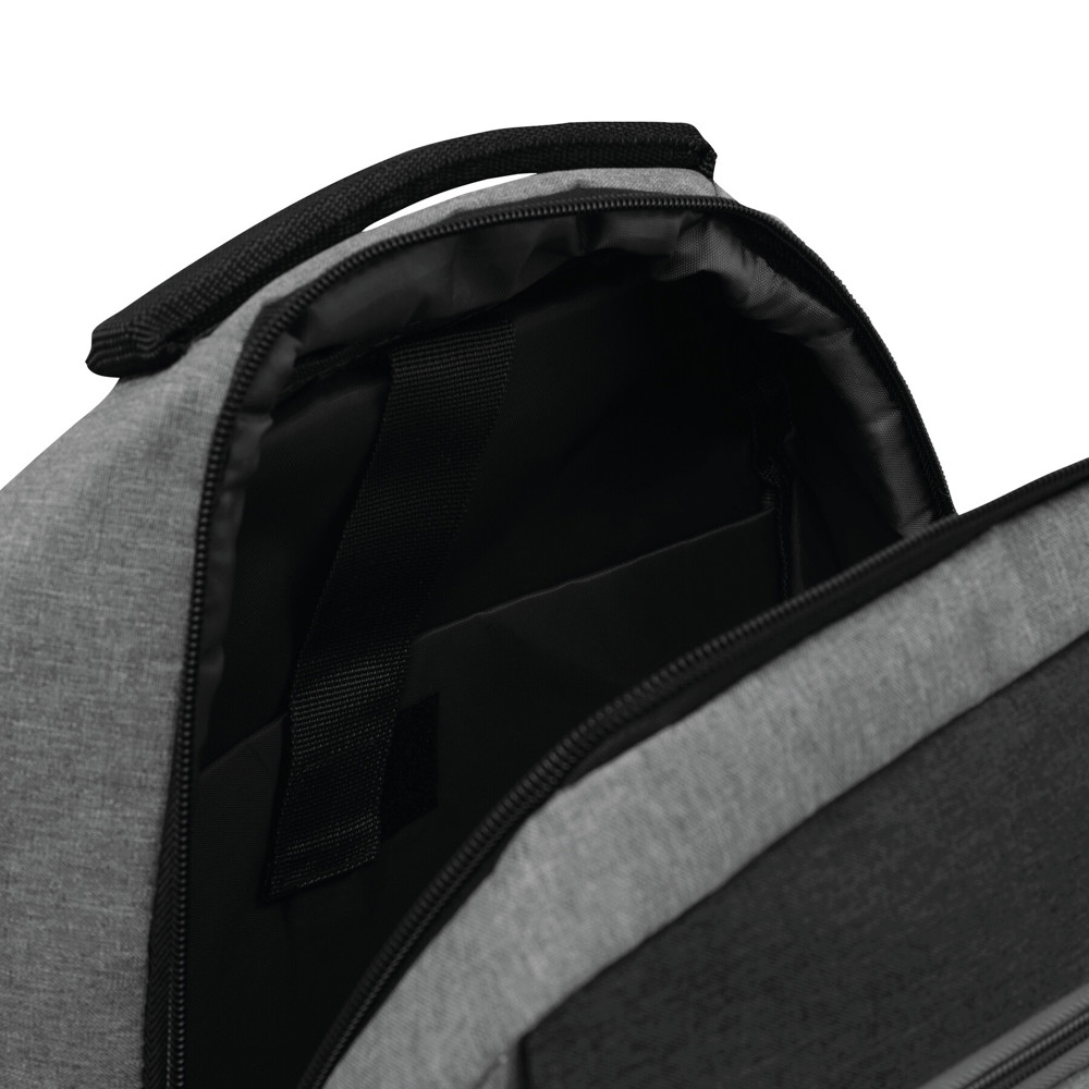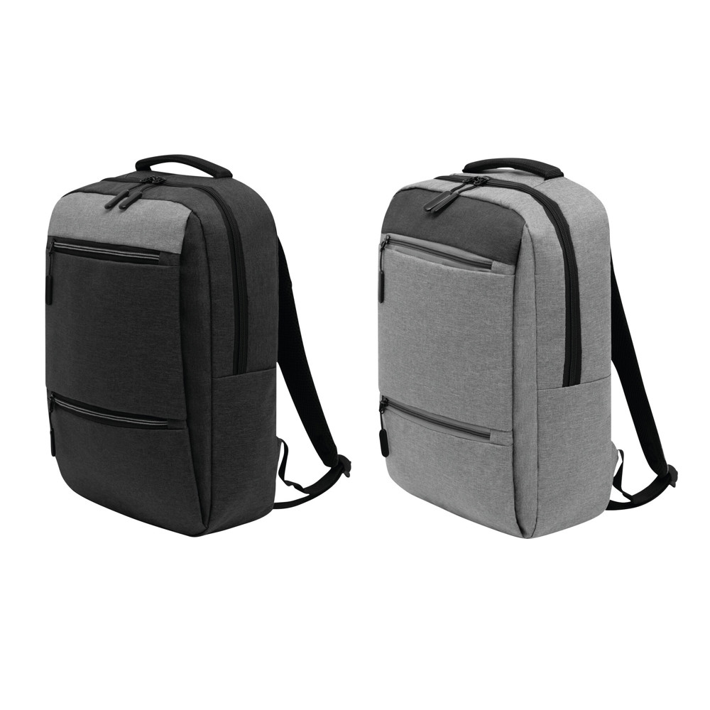 Rugzak NORDIC LINE: 2 ritsvakken aan de voorkant, hoofdvak met ritssluiting met gefoamd binnenvak voor laptop of tablet, organiser met 4 insteekvakken, 1 insteekvak aan 1 zijkant, gefoamde schouderbanden en rugvlak.