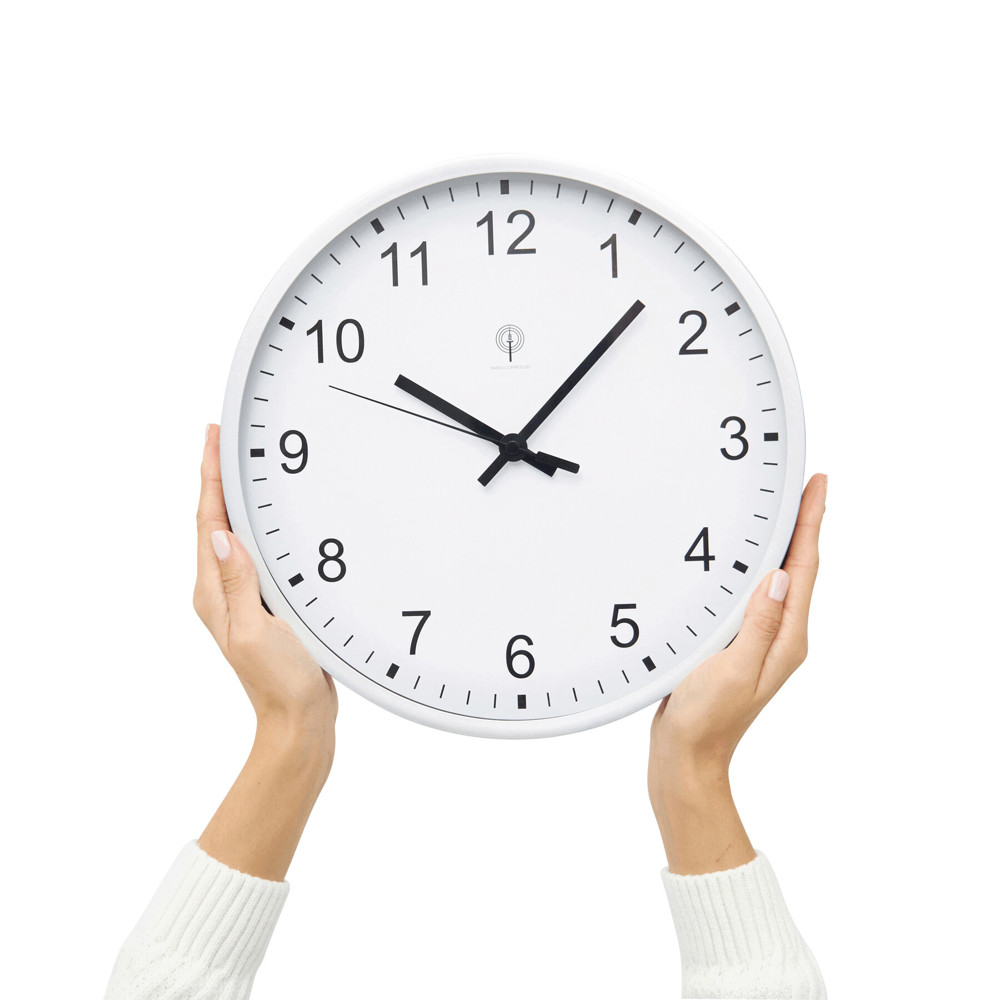 Analoge radio-controlled wandklok URANUS: met quartz uurwerk en analoge tijdsaanduiding, werkt op batterijen (1x AA niet inbegrepen).