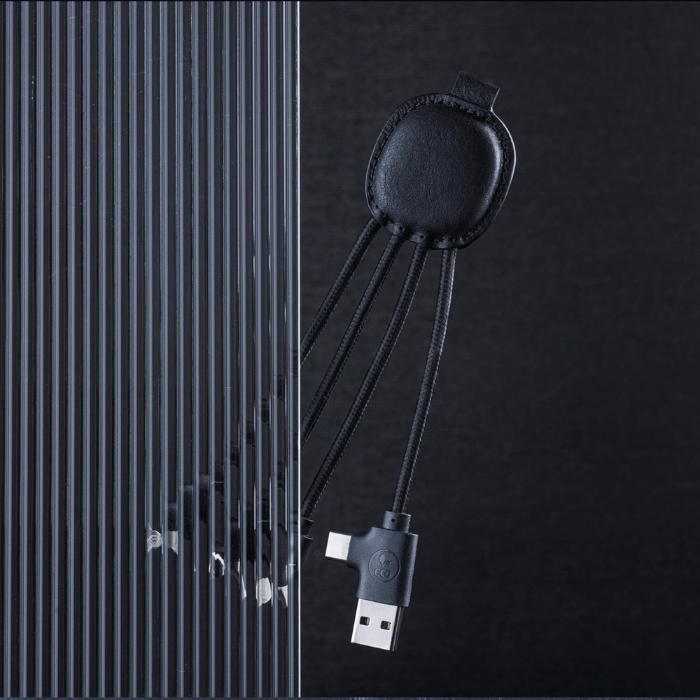 Met deze veelzijdige adapter kun jij al je apparaten (tegelijk) opladen. Door het gerecyclede leer is het ook nog eens een hét duurzame alternatief op de gewone adapter en door de ingebouwde NFC functie is die een innovatieve manier om je website/visitekaartje/promotieactie te laten zien.