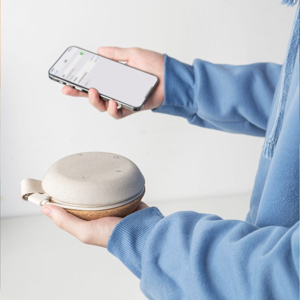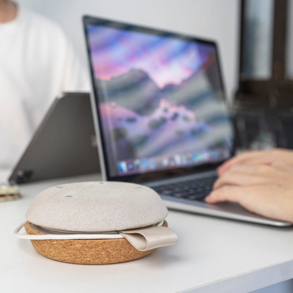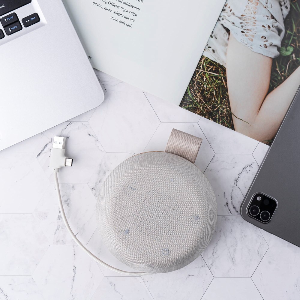 Compacte draagbare speaker. Start overal een conferentiegesprek. De Meetair is ook zeer geschikt voor luisteren naar muziek. De verborgen kabel heeft een ingangsadapter voor USB en USB-C. De speaker heeft twee microfoons, dus kan hij overal neergezet worden. Bovendien worden eventuele omgevingsgeluiden onderdrukt.