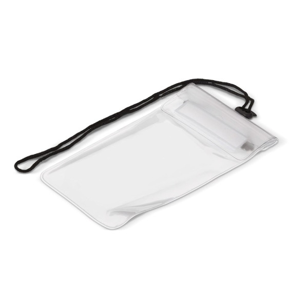 Waterwerende PVC pouch voor een smartphone of camera. Ook geschikt voor het bewaren van documenten en paspoort tijdens het reizen. Voorzien van omhangkoord (120cm). Geschikt voor vele modellen smartphones.