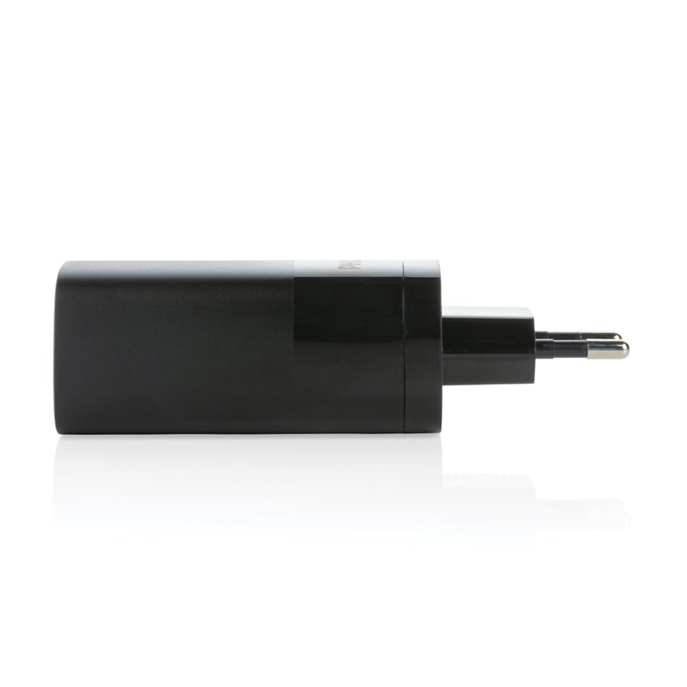 Ben je het urenlang wachten op het opladen van je apparaten beu? Zeg vaarwel tegen langzaam opladen en hallo tegen razendsnel opladen met deze 65W Ultra Snelle PD Wandlader met 2 Type-C-uitgangspoorten en een USB-A-uitgangspoort. Het laadt niet alleen je smartphones en tablets in een oogwenk op, maar kan ook je laptops van stroom voorzien, waardoor het de ultieme alles-in-één oplaadoplossing is. Je apparaten zijn in veilige handen met onze geavanceerde bescherming tegen oververhitting, overspanning en overstroom. Deze wandlader is uitgerust met GaN (Gallium Nitride) technologie, wat hem niet alleen kleiner en draagbaarder maakt, maar ook de efficiëntie verhoogt. Voor een snelle boost kun je jouw apparaat in slechts 30 minuten tot 50% opladen.Input: 100-240V, Output power: 65W Max.Output USB-C1/C2: 5V/3A, 9V/3A, 12V/3A, 15V/3A, 20V/3.25AOutput USB-A: 5.5V/5A, 5V/3A, 9V/3A, 12V/3A, 20V/3A