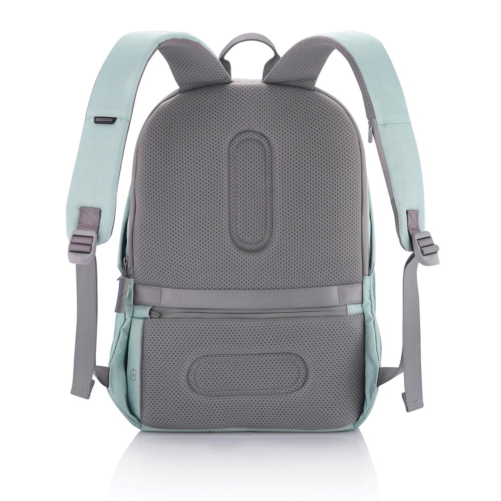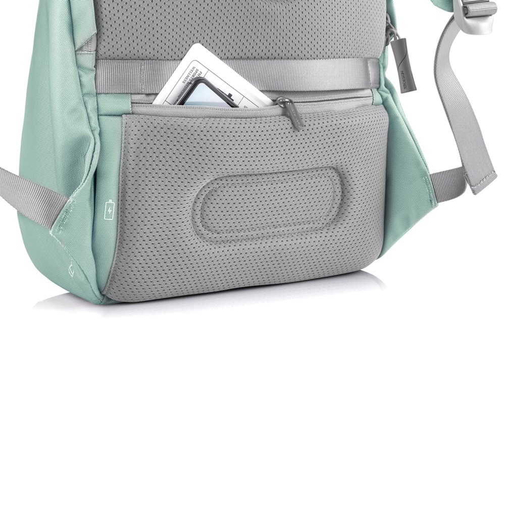 Naar de universiteit, naar school, naar het werk of op vakantie? Bobby Soft is er klaar voor! Het iconische Bobby anti-diefstal ontwerp met verborgen en RFID-beschermde vakken en verborgen ritsen is aangevuld met een veilige ritssluiting op het hoofdcompartiment om uw spullen nog beter te beschermen. Het ruime interieur is veelzijdig en handig. In het hoofdcompartiment kunt u uw spullen gemakkelijk ordenen met een gewatteerd 15,6" laptopcompartiment, diverse slimme kleine zakken en een sleutelhangerclip. De bovenkant van de rugzak is flexibel, waardoor er extra ruimte ontstaat voor het opbergen van kleding, boeken of wat u maar nodig heeft. De rugzak is uitgerust met een geïntegreerde USB-oplaadpoort en gemaakt van waterafstotend materiaal. Bobby Soft is gemaakt van gerecycled materiaal – er worden 39 oude plastic flessen gebruikt er wordt 23L water bespaart tijdens de productie van elke rugzak. Een rugzak die past bij elke stijl. Geregistreerd ontwerp®