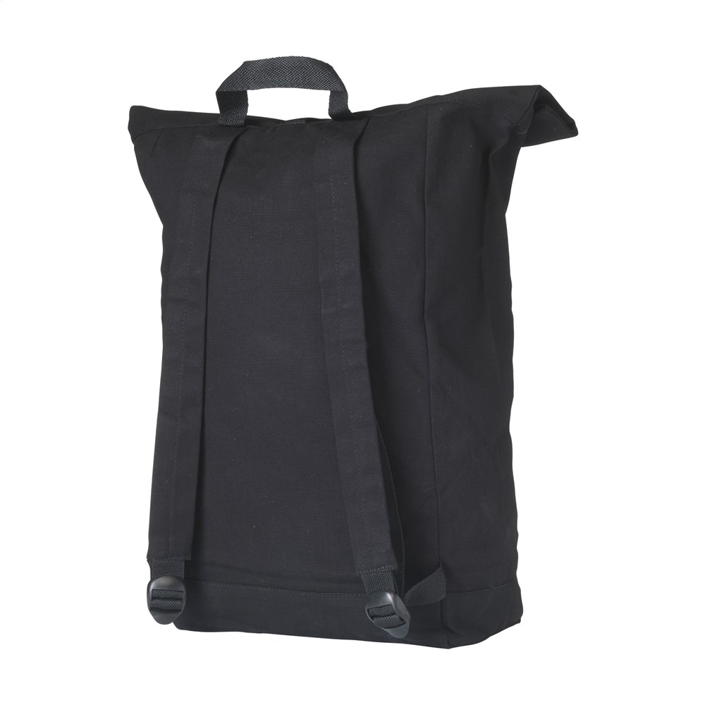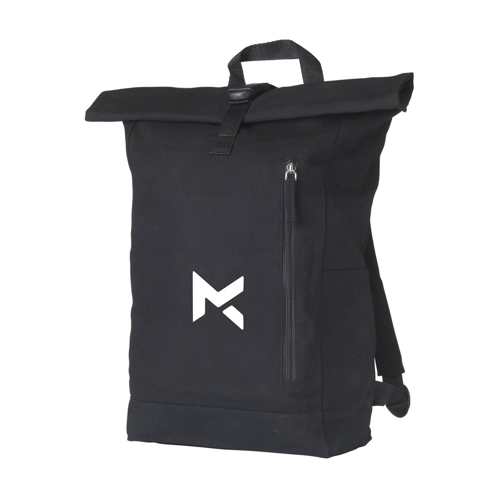 Stoere, praktische urban 'roll-top' rugzak van sterk canvas (320 g/m²). De rugzak heeft één groot binnenvak, een insteekvak aan 1 zijde en een groot ritsvak aan de voorzijde. Met draaglus en een rolsluiting met handig kliksysteem aan de bovenzijde. De perfecte tas voor dagelijks gebruik. Inhoud ca. 20 liter.