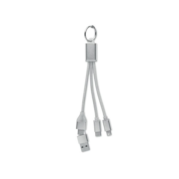 Sleutelhanger met oplaadkabel met ingang 2-in-1 type-C & type-A en micro-B (2 in 1 pin) en type C-uitgang.