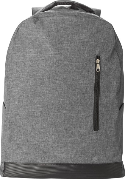 Polyester rPET (600D) rugzak (15 inch) met antidiefstalfunctie. Klein vakje aan de voor- en achterkant, vakjes voor flessen aan de zijkant, trollyband, laptopvak met klittenbandsluiting en verstelbare bandjes. De details aan de onderkant zijn gemaakt van gerecyclede autobanden.
