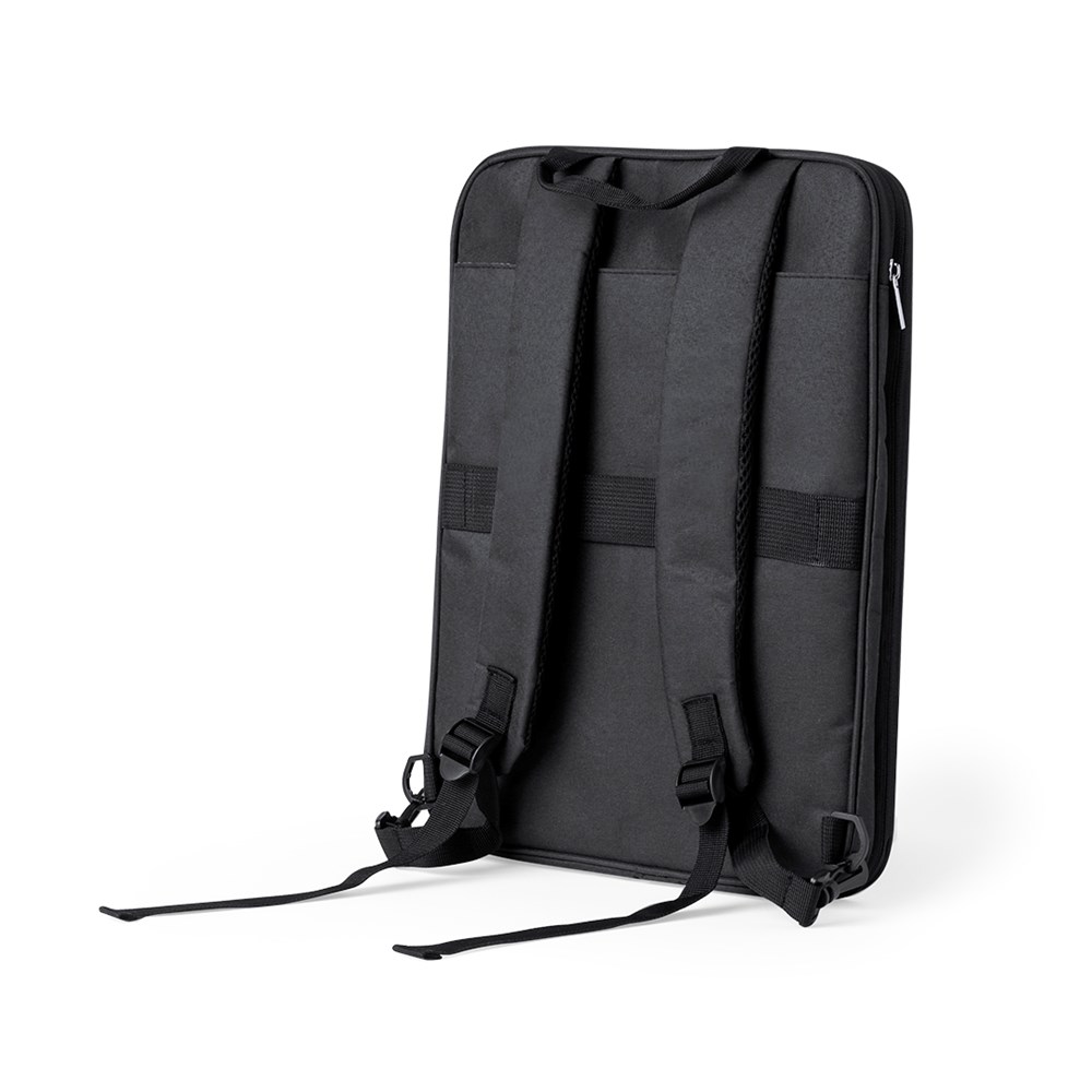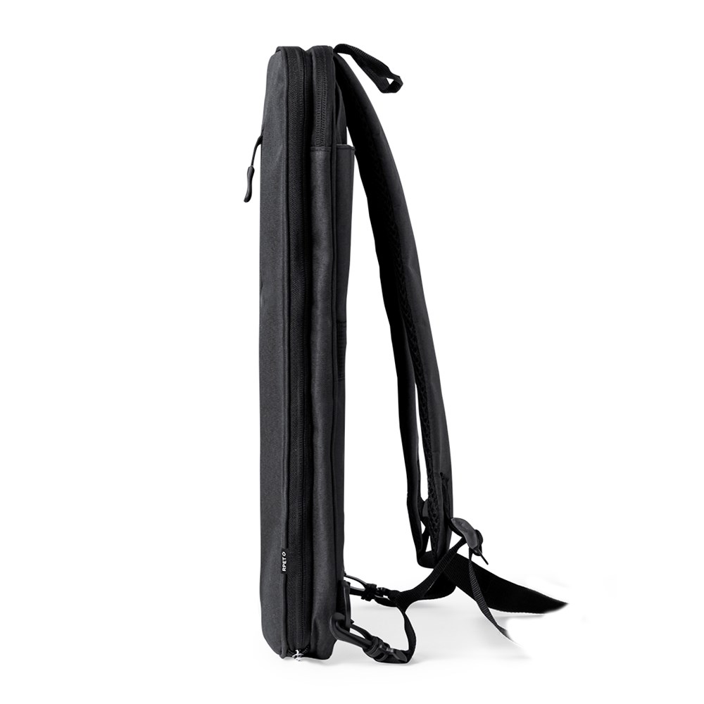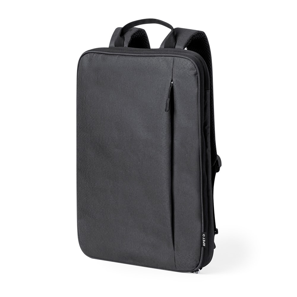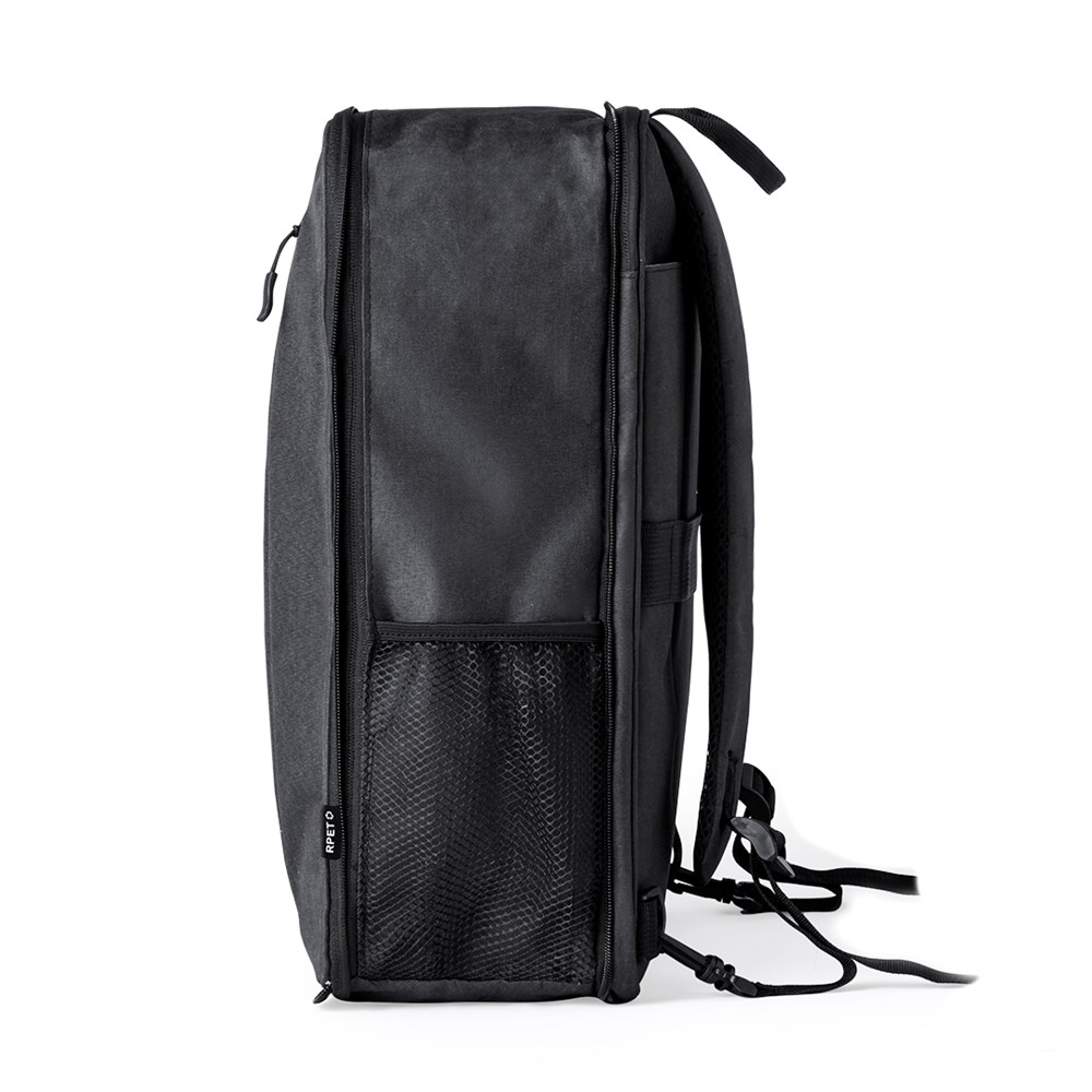 Uitschuifbare rugzak gemaakt van resistent 600D RPET. Uitgerust met dubbele ritssluiting, met de mogelijkheid om de capaciteit uit te breiden. Binnenin heeft hij gewatteerde compartimenten ontworpen voor tablets tot 10 inch, laptops tot 15 inch. De schouderbanden zijn gewatteerd, verstelbaar en afneembaar, en kan worden opgeborgen in de achterzak. De rugzak is voorzien van een riem om de bagage aan te passen en een handvat aan de bovenkant voor gemakkelijk dragen. RPET-badge op label. Gepresenteerd in een individuele gerecyclede tas.