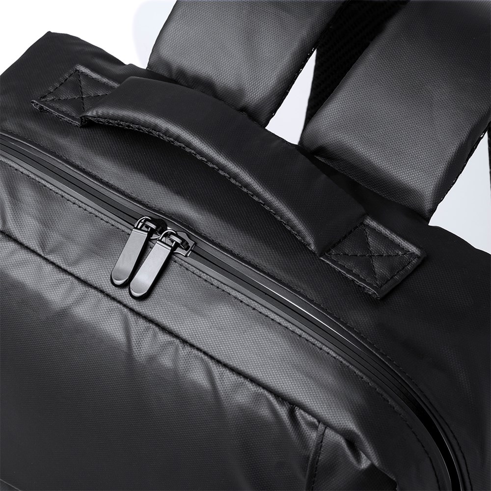 Rugzak vervaardigd uit stijlvol PU-leer. Gekenmerkt door een stedelijk ontwerp met een gewatteerd vak voor tablets tot 10 inch en laptops tot 15 inch. Het beschikt ook over een voorvak versterkt door een reflecterende band. Rug- en schouderbanden zijn gewatteerd en verstelbaar en gemaakt van ademende stof aan de binnenkant. Inclusief trolley-bevestiging en een comfortabel gevoerd handvat aan de bovenkant. Gepresenteerd in een individuele gerecyclede tas.