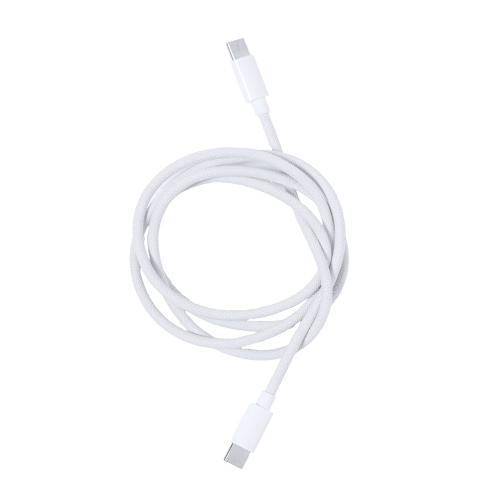 Oplaadkabel met dubbele Type C aansluiting. 65W vermogen en geschikt voor dataoverdracht. 100 cm lang, met aluminium connectoren en gepresenteerd in een aantrekkelijke koffer met één transparant en één ondoorzichtig deel. Met draaggreep en individueel gepresenteerd in een gerecyclede tas.