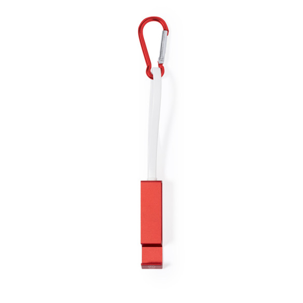 Multifunctionele laadkabel, gemaakt van gerecycled aluminium en met een intelligent ontwerp voor het handig opbergen van de laadkabels, maar ook voor gemakkelijk transport. Inclusief bijpassende karabijnhaak en smartphonehouder, met Type C aansluiting (in- en uitgang) en dubbele Micro USB / Lightning-verbinding. Verkrijgbaar in verschillende metallic kleuren en met logo van gerecycled aluminium. Gepresenteerd in een individuele gerecyclede tas. Gerecycled aluminium is een materiaal met vrijwel oneindige recyclingmogelijkheden, waarbij het zijn oorspronkelijke eigenschappen behoudt en tijdens dit proces minder energie verbruikt. GRS-certificering (Global Recycled Standard), die de gerecyclede oorsprong garandeert van het materiaal dat wordt gebruikt om het product te vervaardigen.