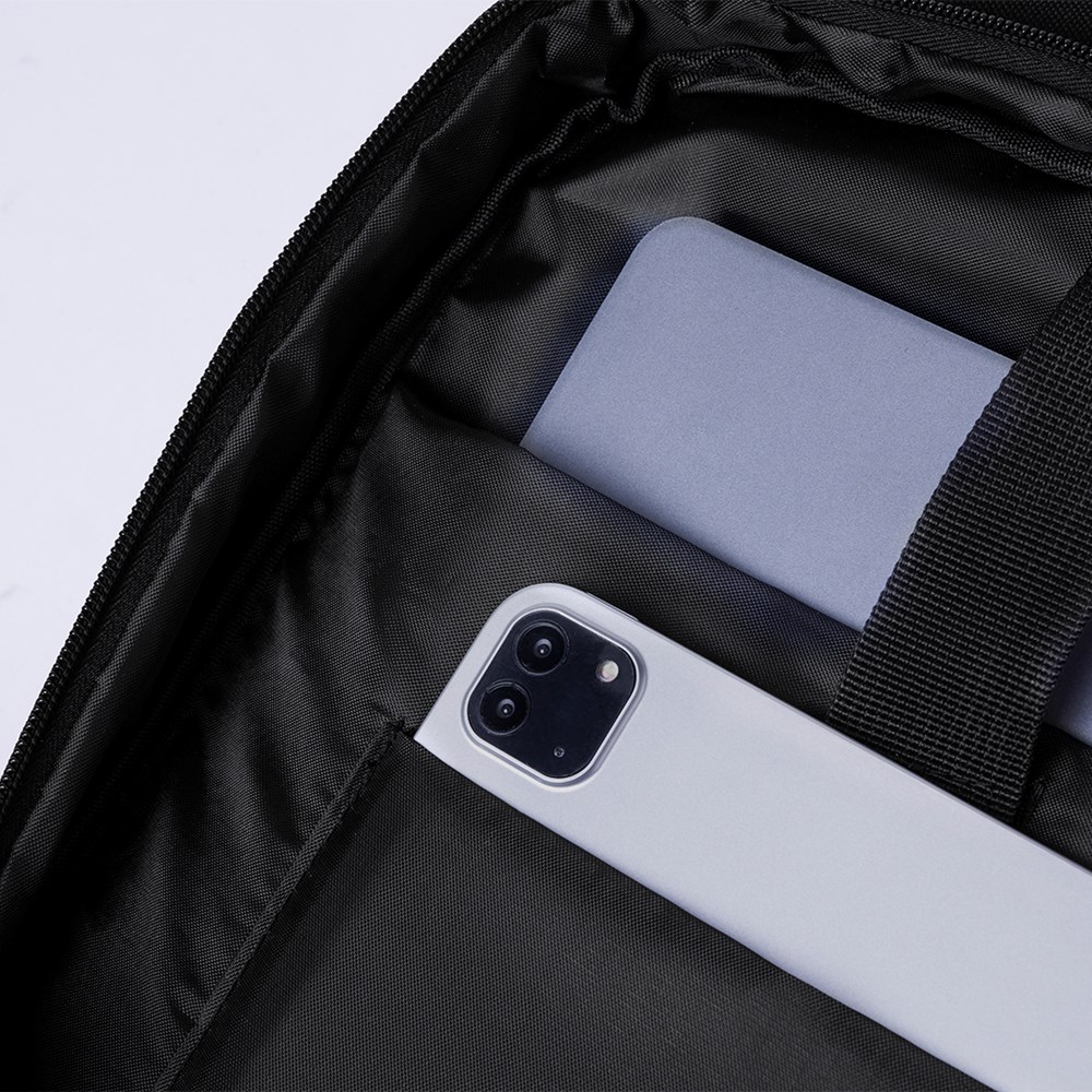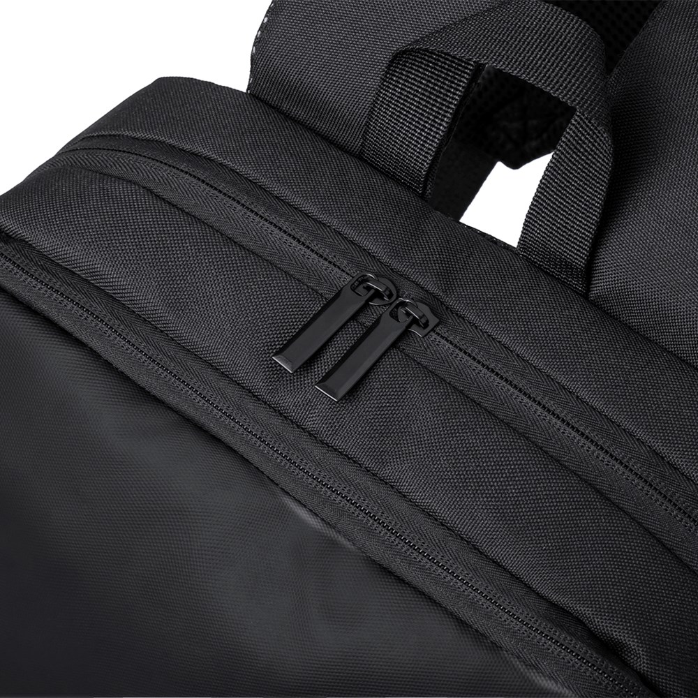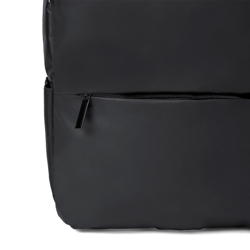 Rugzak van elegant PU-leer. Een stedelijk ontwerp met een gewatteerd middenvak met dubbele ritssluiting voor tablets tot 10 inch en laptops tot 15 inch, evenals een secundair vak. Daarnaast is er een voorvak met ritssluiting en een beschermende flap. De rug- en schouderbanden zijn gewatteerd, verstelbaar en voorzien van een ademende stof. Het heeft een trolleybevestiging en een comfortabel handvat aan de bovenkant. Gepresenteerd in een individuele gerecyclede zak.