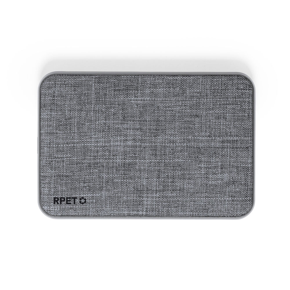 Externe hulpaccu bekleed met zacht RPET-polyester. 5.000 mAh capaciteit, met Type C in- en uitgangsaansluiting + 2 USB-uitgangen. Laadstatusindicator en micro-USB-oplaadkabel meegeleverd. Met groot merkoppervlak en RPET-logo. Gepresenteerd in een aantrekkelijk kraftdesign doos.