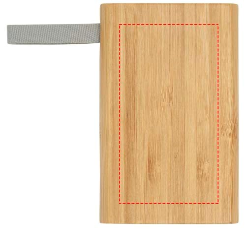Bamboe powerbank die 5000 mAh back-upstroom biedt voor mobiele telefoons of andere digitale apparaten. Met ledlampjes en een webbing gemaakt van RPET-materiaal. Type-C-oplaadkabel inbegrepen. Verpakt in een geschenkverpakking en geleverd met een gebruiksaanwijzing (beide gemaakt van duurzaam materiaal). Aangezien bamboe een natuurlijk product is, kan ieder item enigszins variëren in kleur.