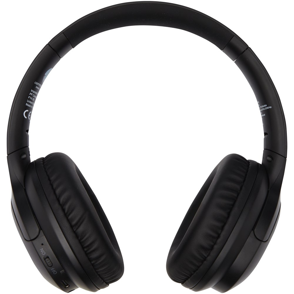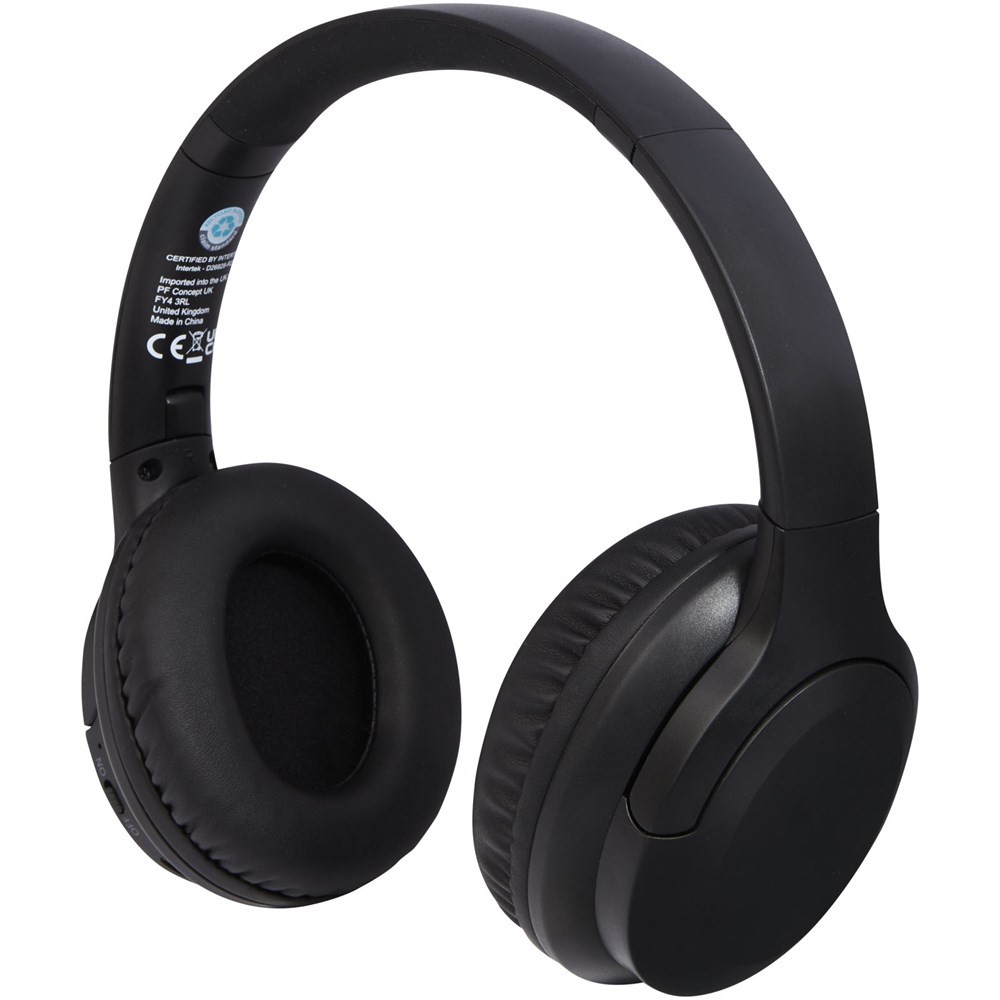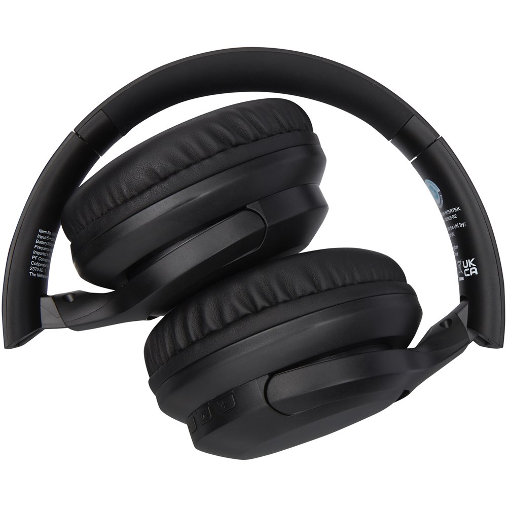 Draadloze koptelefoon gemaakt van gerecycled plastic. De koptelefoon is voorzien van een microfoon om telefoongesprekken te beantwoorden en het over-ear design van de oorschelpen geeft een fantastische geluidservaring. Bluetooth® 5.2 met een verbindingsbereik tot 10 meter. Ergonomisch ontwerp met sponsachtige oorschelpen voor een comfortabele pasvorm. De oorschelpen kunnen worden opgevouwen en gedraaid. De ingebouwde oplaadbare batterij van 300 mAh biedt tot 12 uur afspeeltijd bij maximaal volume. Geleverd in een geschenkverpakking inclusief handleiding (beide gemaakt van duurzaam materiaal).