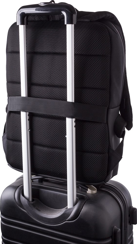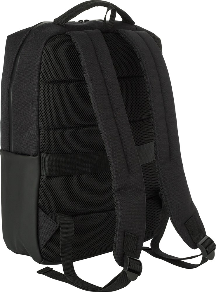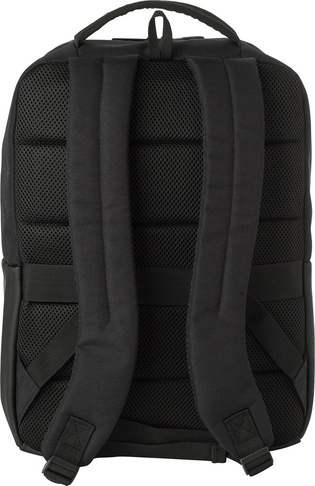 Polyester (600D) laptoptas (15 inch). Eén groot vak met ritssluiting bovenaan met meerdere vakken aan de binnenkant. Klein vak met ritssluiting aan de voorkant. Versterkte achterkant en verstelbare banden.