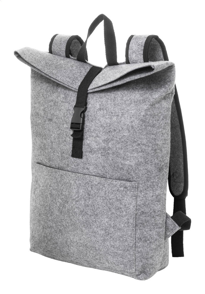 RPET vilten rolltop-rugzak met hoofdvak met gespsluiting en voorvak met ritssluiting, laptopvak (15") en gewatteerde schouderbanden. Met opvallend RPET-label.