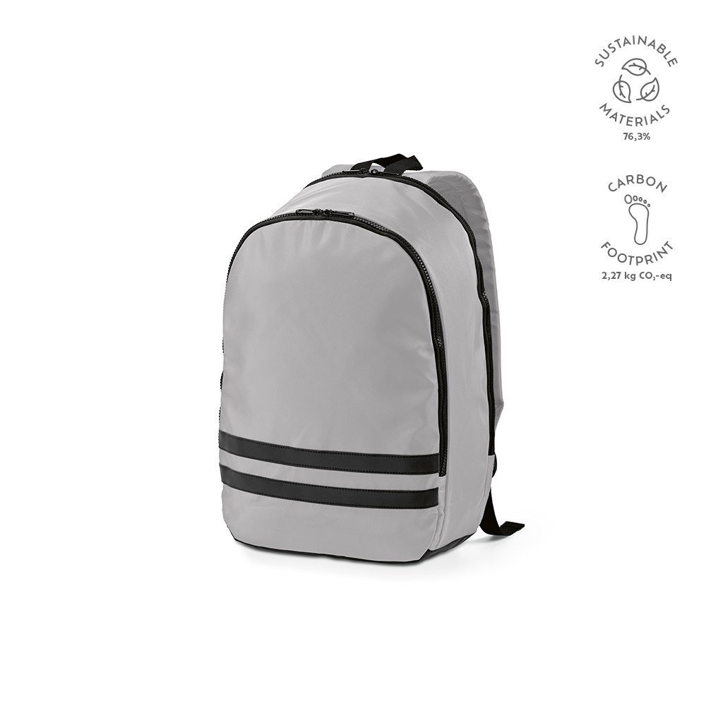 Onze rPET 18L rugzak staat voor duurzaamheid. Een groot hoofdvak en een ander vak speciaal voor de laptop met een geïntegreerde neopreenhoes, beide met thermogeïnjecteerde ritsen. Aan de buitenkant zorgen twee reflecterende zwarte banden voor een betere zichtbaarheid. Beide ritsen zijn thermisch geïnjecteerd.