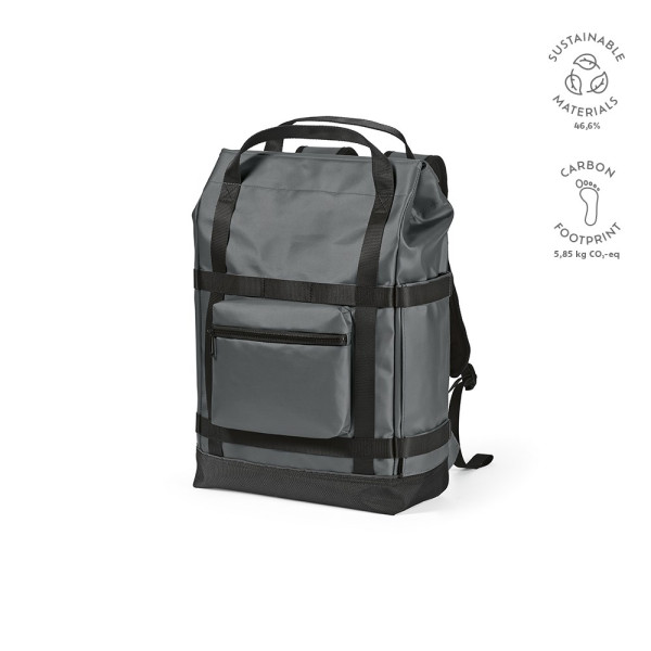 Deze rugzak van 21 liter is gemaakt van gerecycled materiaal en is daardoor duurzaam. Het is ook waterdicht en heeft een verborgen vak waar je je laptop veilig in kunt opbergen. Een uniek sluitsysteem met magneten. Alles verpakt in een gerecyclede katoenen tas.