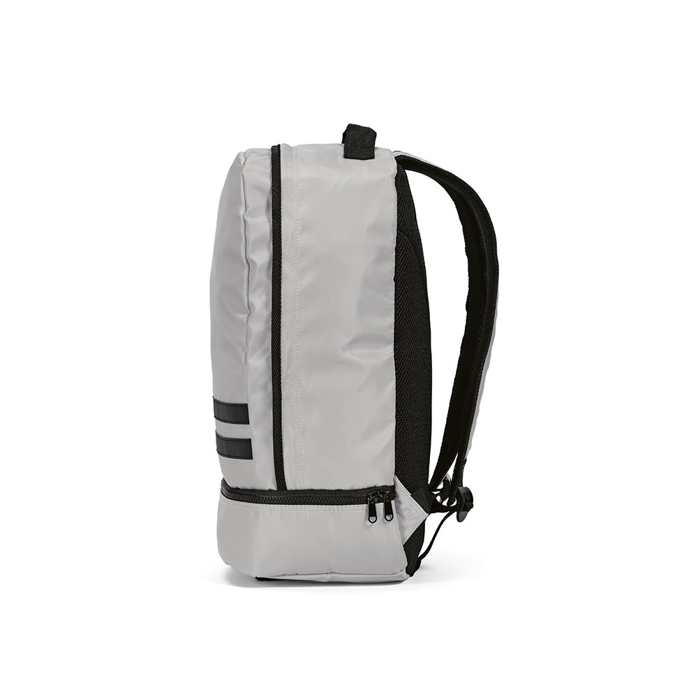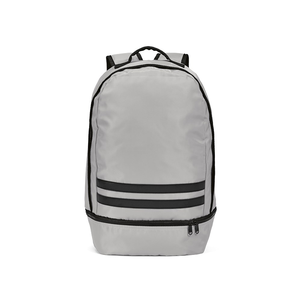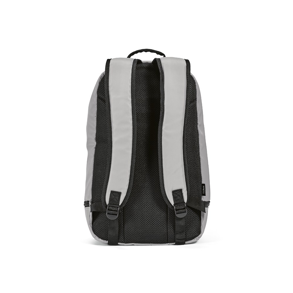 Deze rugzak van 25 liter is gemaakt van rPET en ontworpen op basis van functionaliteit. Met rugvulling, een versterkt handvat bovenaan en twee zwarte reflecterende stroken vooraan voor de veiligheid. Aan de onderkant zit een apart vak dat ideaal is voor schoenen. Een ontwerp gericht op functionaliteit.