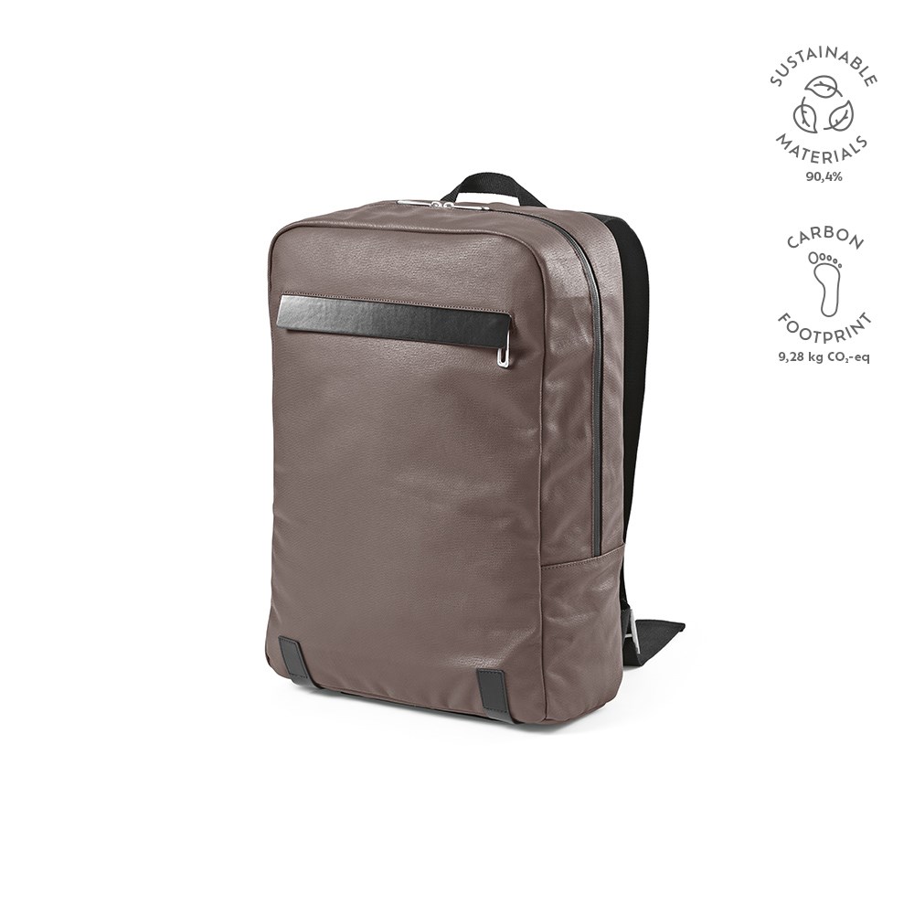 Ervaar verhoogde functionaliteit met onze rugzak van 23 liter met waterdichte coating. Gemaakt van gerecycled katoenen canvas (340 g/m²), verrijkt met gerecyclede PU-details. Geleverd met een individuele tas van gerecycled katoen, wat onze toewijding aan duurzaamheid weerspiegelt.