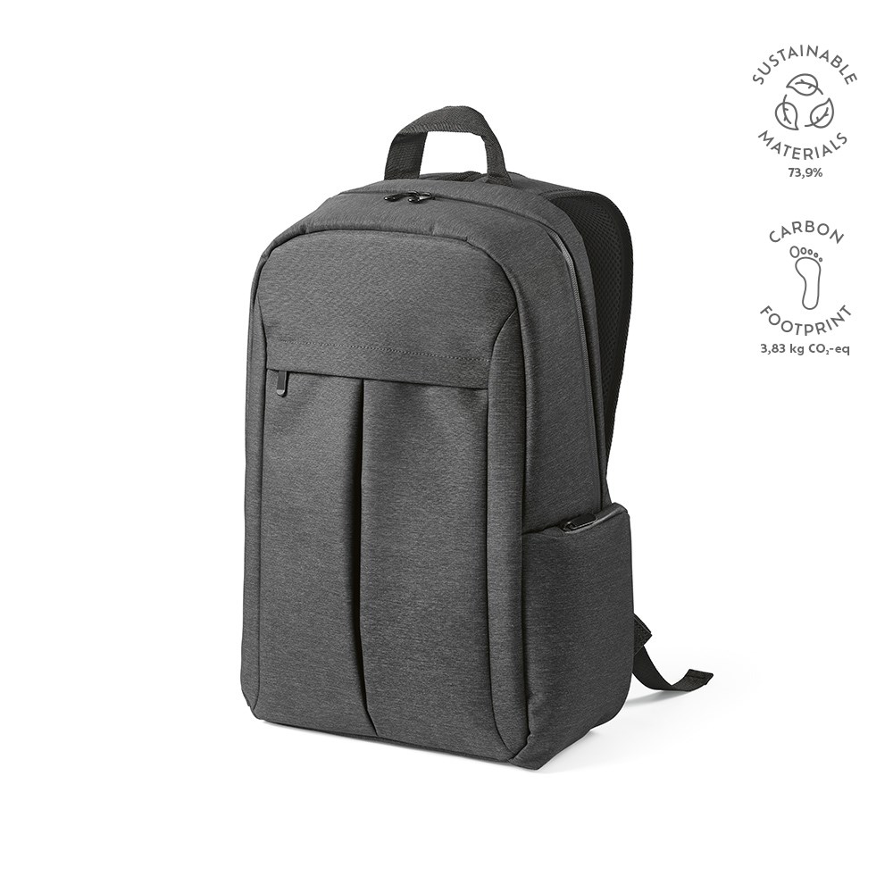 Ontdek functionele stijl met onze gerecycled nylon 22L rugzak. Voorzien van een versterkt handvat aan de bovenkant en waterdichte ritsen. Elastische zijvakken zijn ontworpen voor het meenemen van flessen en een zijvak met rits. Compleet met een afzonderlijke tas van gerecycled katoen.