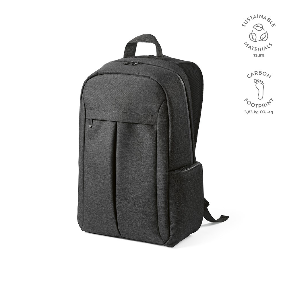 Ontdek functionele stijl met onze gerecycled nylon 22L rugzak. Voorzien van een versterkt handvat aan de bovenkant en waterdichte ritsen. Elastische zijvakken zijn ontworpen voor het meenemen van flessen en een zijvak met rits. Compleet met een afzonderlijke tas van gerecycled katoen.