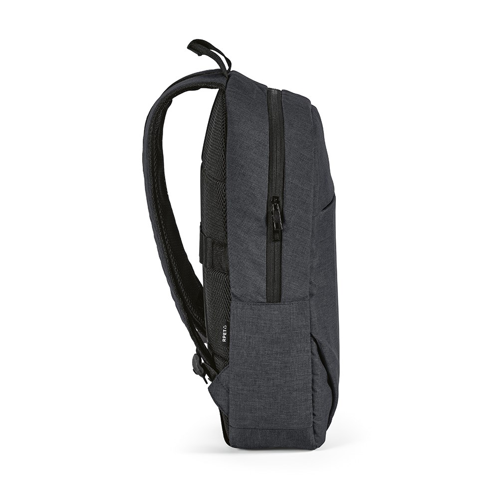 Efficiëntie ontmoet duurzaamheid in onze 300 D rPET rugzak. Het zijvak en voorvak met rits voegen functionaliteit toe. Met een versterkt handvat aan de bovenkant is de rugzak ontworpen voor eenvoudige mobiliteit in de stad, met behoud van duurzaamheid.