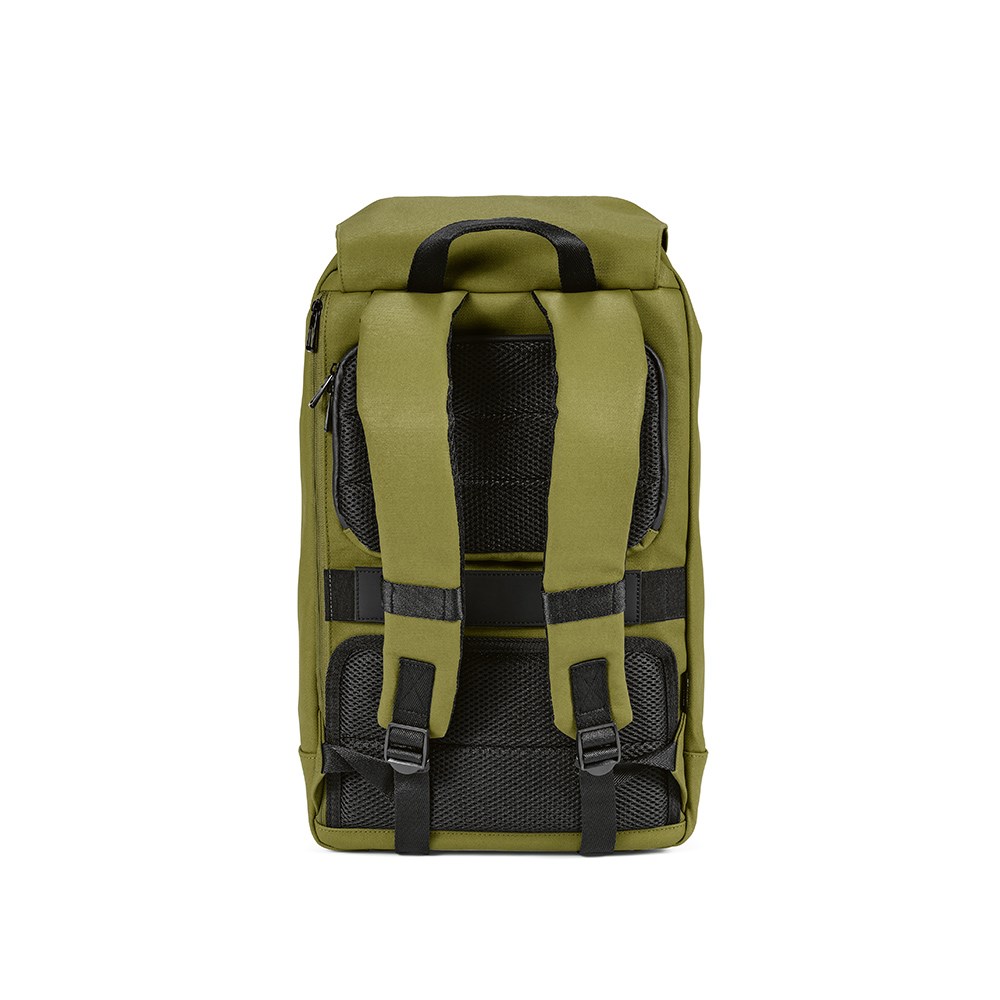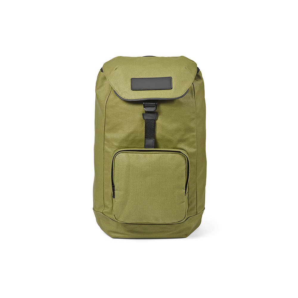 Deze rugzak van 20 liter is gemaakt van 240 gsm gerecycled katoenen canvas met een PU-coating, waardoor het waterbestendig is. Het heeft een grote capaciteit, met een "G"-gesp die de sluiting uniek maakt. Een afneembare voorzijde patch dus aan te passen. Compleet met een kleiner voorvak met rits.
