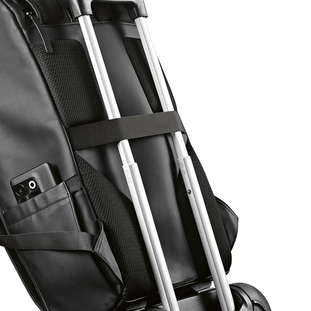 Deze rugzak van 20 liter is gemaakt van gerecycled PU, waardoor deze ruim en duurzaam is. De rugzak heeft een bovenvak, een voorvak en een gewatteerde laptopsleeve achteraan: allemaal afzonderlijk toegankelijk. Twee zijvakken en gevoerde riemen zorgen voor extra comfort.