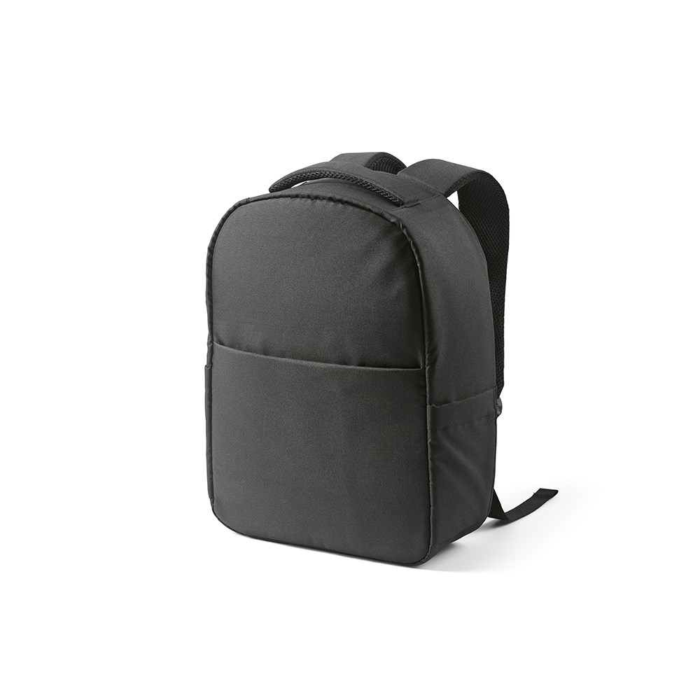 Ontdek het comfort van onze rPET 16L rugzak. Verborgen voorvak, rugvulling, trolleyband, verstevigd handvat en schouderbanden. Intern gewatteerd 15,6'' laptopvak en discrete zijvakken voor flessen. Geleverd in een individueel recyclebare katoenen tas.