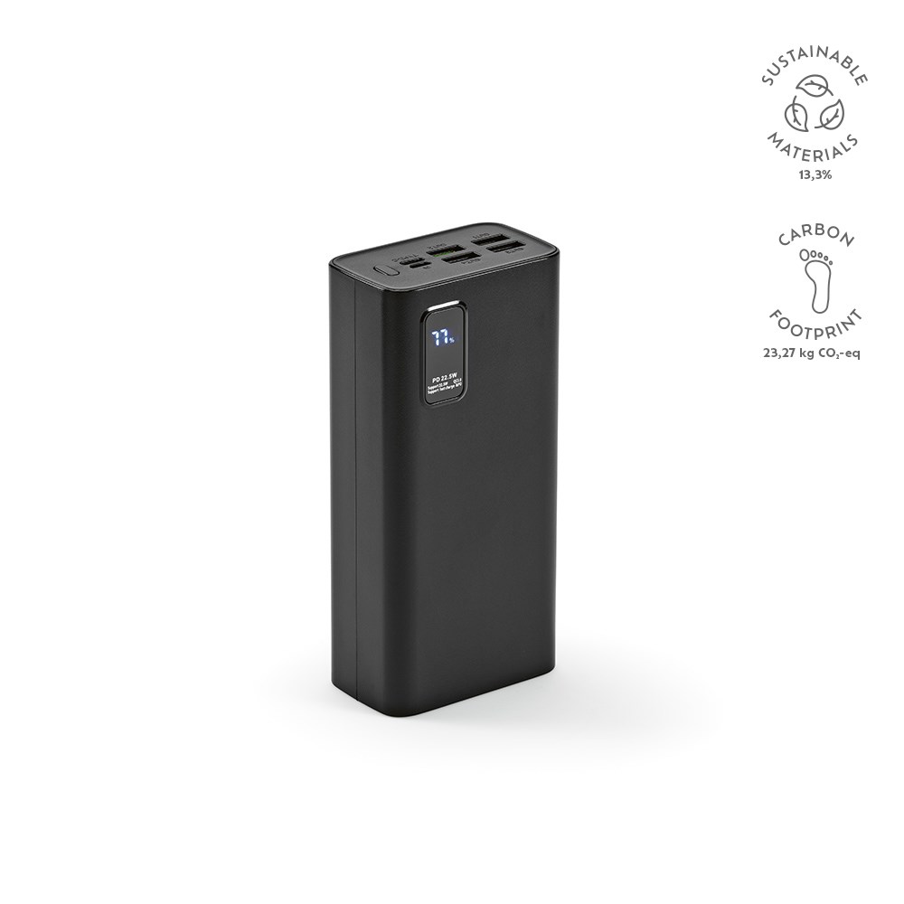 Duurzame kracht in rABS. Versterk met 30.000mAh. Ontketen 30W output. Aansluiten via USB-C en USB-A, bidirectioneel. LED-scherm begeleidt je energiereis. Een fusie van eco-luxe en kracht.