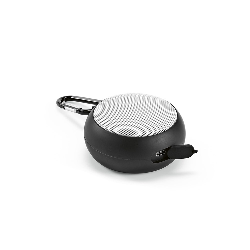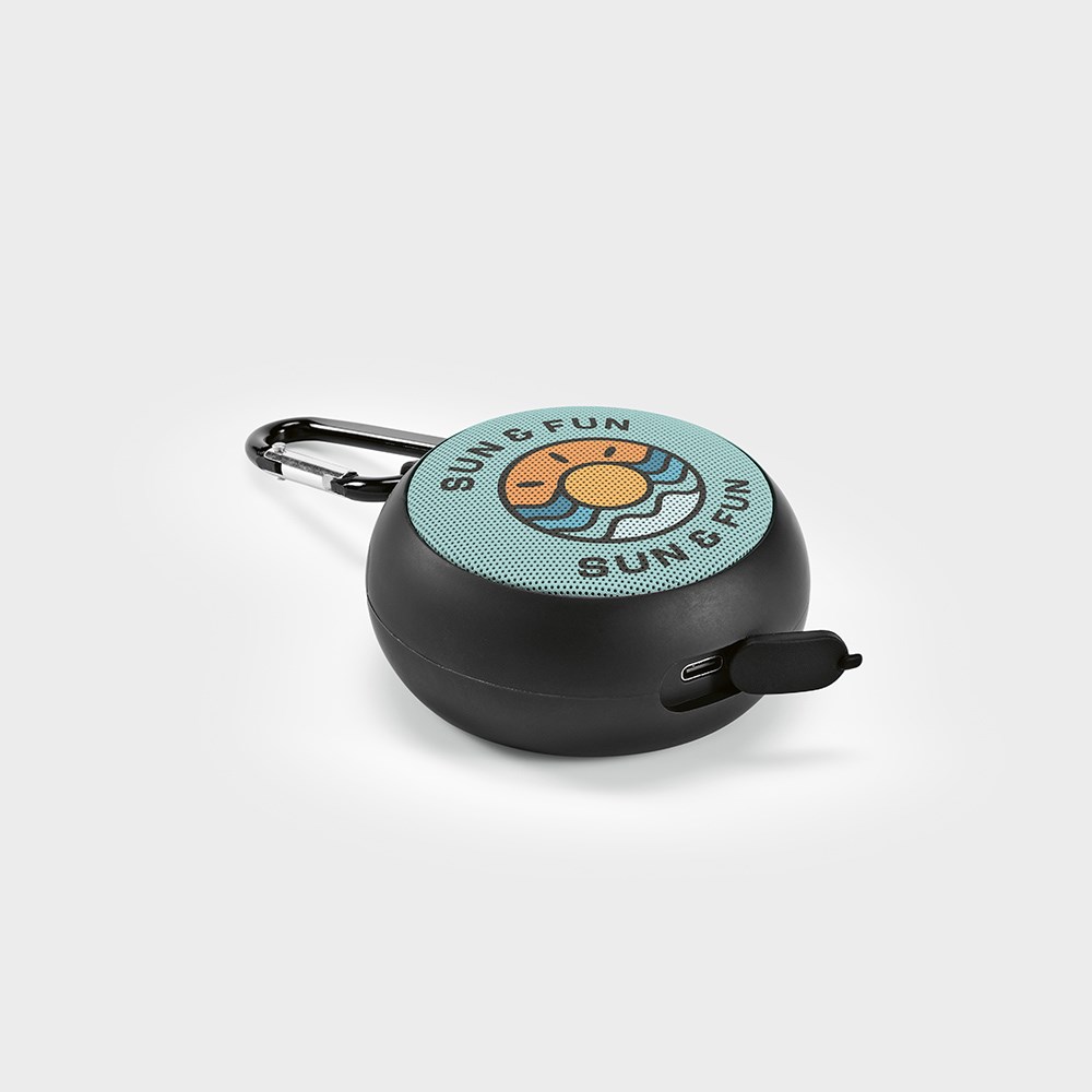 Dit is een 5W luidspreker, uitgerust met een 3,7V 1.000mAh batterij voor langdurige speeltijd. De draadloze verbinding zorgt voor naadloze aansluiting. Geniet van 1,5 uur speeltijd en de oplaadtijd is ongeveer 2 uur via de USB-C-aansluiting. Geniet bovendien van de flexibiliteit van afneembare metalen roosters voor een volledige aanpassing en een karabijnhaak om hem mee te nemen.