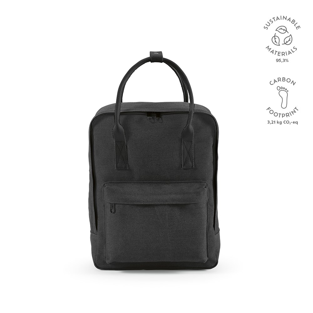 Deze rugzak van gerecycled katoenen canvas (450 g/m²) is een voorbeeld van duurzaamheid met zijn capaciteit van 18 liter. Twee handvatten voor meer gebruiksgemak en schouderbanden van rPET. Ook een voorvak. Verpakt in een gerecyclede PE polyzak.