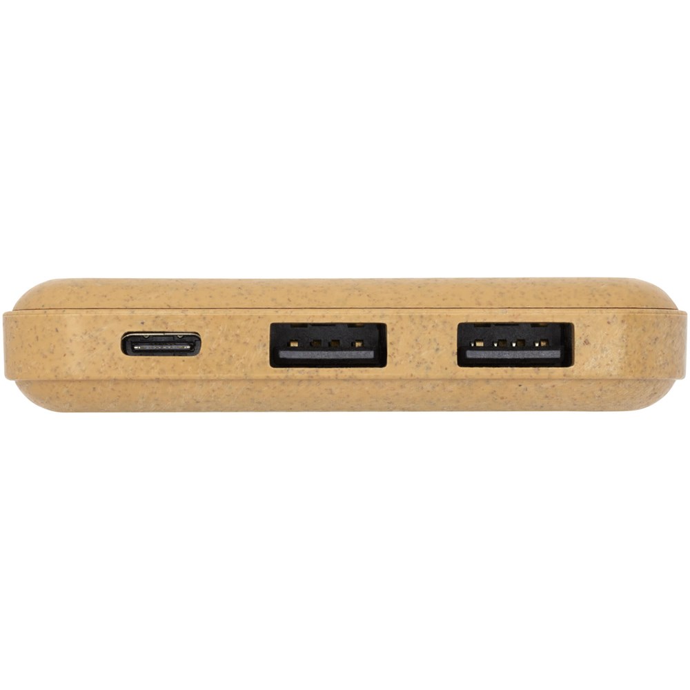 Biologisch afbreekbaar en compact vermogen met hoge capaciteit. Oplaadkabel inbegrepen. Ingang: DC 5 V/2000mA. Uitgang1: DC 5V2000mA. Uitgang 2: DC 5 V/2000mA. Batterij: Lithium-ion polymeer.
