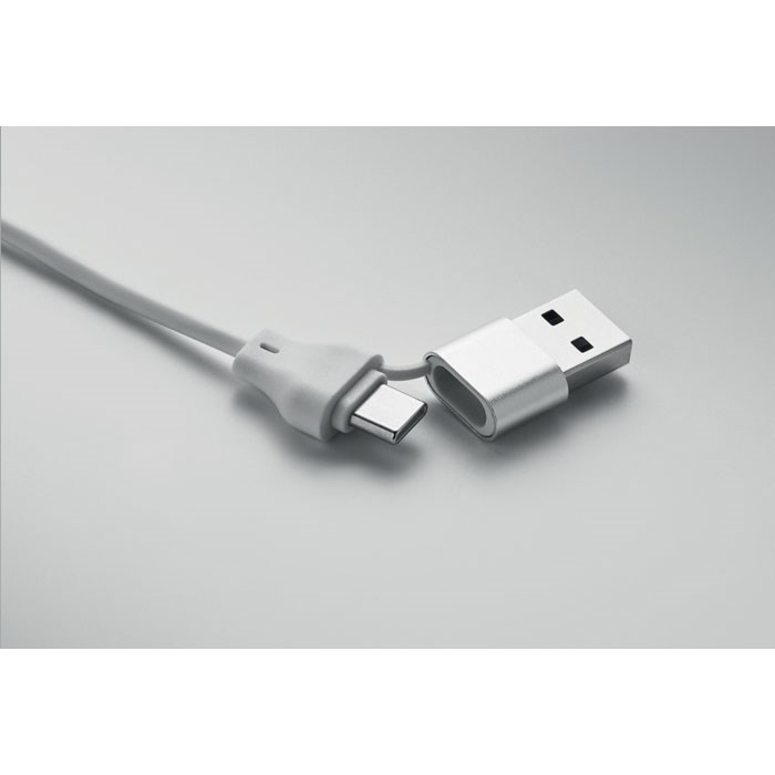 Sleutelhanger 4-in-1 overdracht en oplaadkabel 60W met bamboe detail. Ingang: 2-in-1 Type-C &...meer