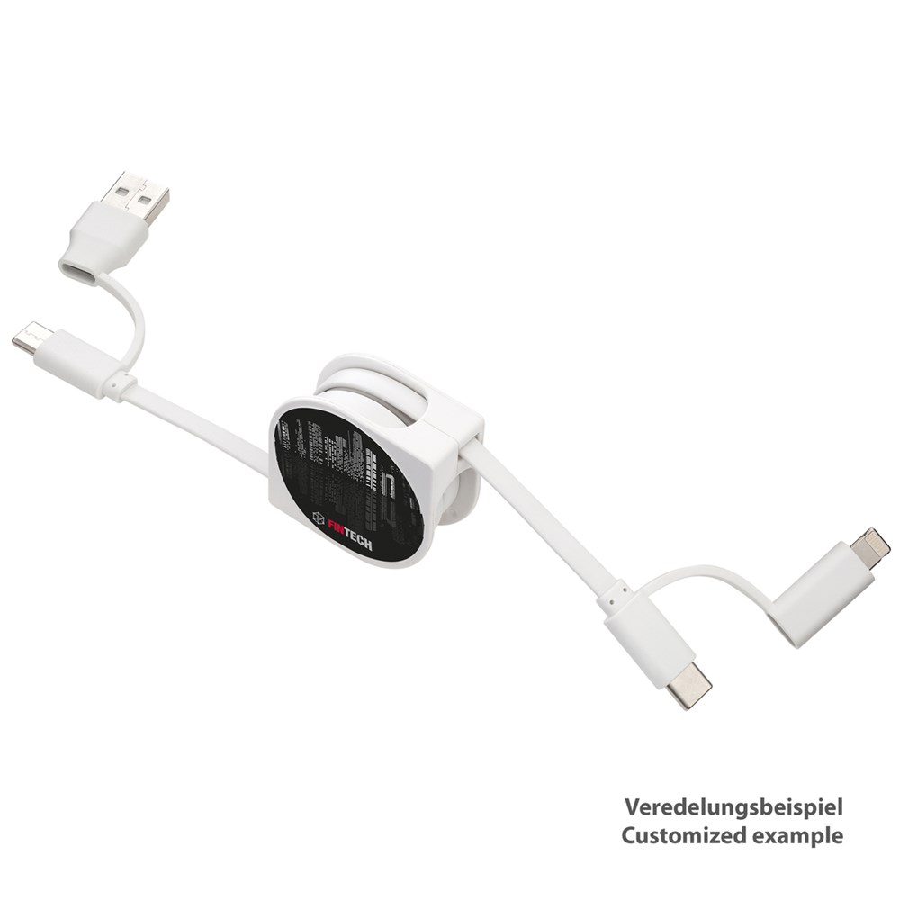 De 6-in-1 oplaadkabel is een USB-C naar USB-C kabel met adapter naar USB-A aan de ene kant. Aan de andere kant heeft de kabel een 2-in-1 adapter voor Micro-USB en 8 pin voor Apple®. Met REEVES-SNAKE II is flexibel opladen voor verschillende apparaten mogelijk. Naast de oplaadfunctie biedt de kabel ook de mogelijkheid om gegevens over te dragen. De 1 meter lange kabel kann handig worden opgerold.
