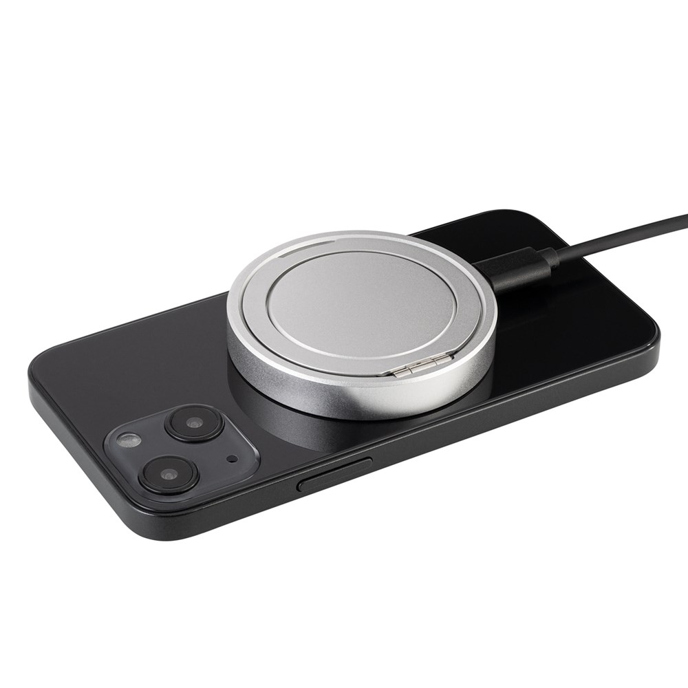 Deze 3-in-1 multifunctionele draadloze oplader biedt u optimaal laadcomfort, of u nu thuis, op kantoor, in een café, op het vliegveld of op het station bent. Met tot 15 watt voor compatibele apparaten en 3 watt voor Apple® Watch laadt hij uw apparaten uiterst efficiënt op. Het magnetische oplaadoppervlak biedt een veilige bevestiging voor apparaten die de MagSafe®-technologie ondersteunen. Klap de ring aan de achterkant uit en de oplader verandert in een handige telefoonstandaard.