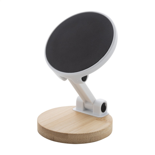 Magnetische bureauhouder voor mobiele telefoons in bamboe en gerecycled ABS. Inclusief...meer