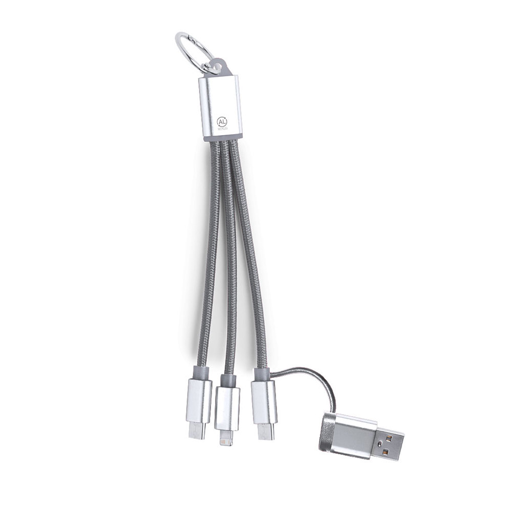 Oplaadsnoer in gerecycled aluminium. Met dual Type C/USB-ingang en Type C, Lightning en Micro USB-uitgangen. Inclusief onderscheidingsmerk gerecycled aluminium.Gerecycled aluminium is een materiaal met bijna eindeloze recyclingmogelijkheden, zonder zijn oorspronkelijke eigenschappen te verliezen en met minder energieverbruik in dit proces.GRS-certificering (Global Recycled Standard), die de gerecycleerde oorsprong van het materiaal dat is gebruikt voor het maken van het product garandeert.Type C, Micro USB en Lightning-aansluiting 5V DC 2.4A.