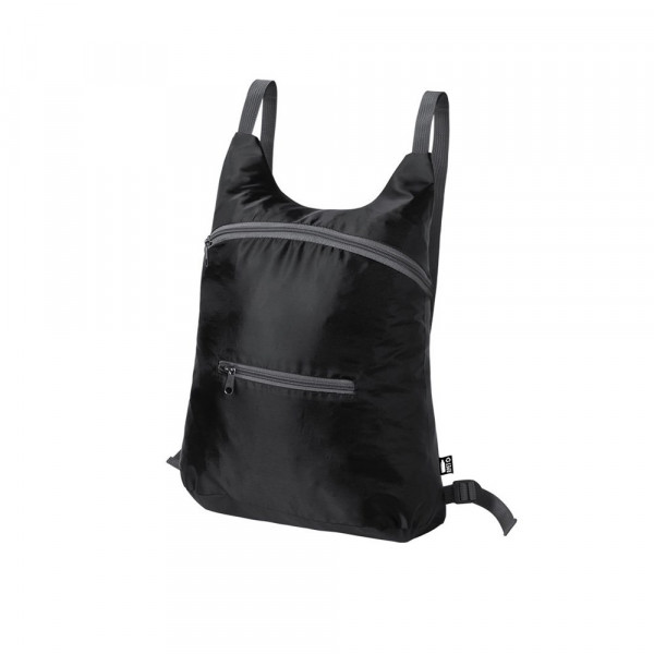 Opvouwbare rugzak van zacht 201D RPET polyester, gemaakt van gerecycleerd plastic, om het hergebruik van plastic afval te bevorderen en de duurzaamheid van de planeet te helpen. Met ritssluiting en voorvak. Versterkte hoeken, verstelbare schouderriemen en accessoires in grijstinten. Klein opvouwbaar formaat, met draagriem. Verkrijgbaar in een brede waaier van kleuren, met RPET embleem op buitenlabel.